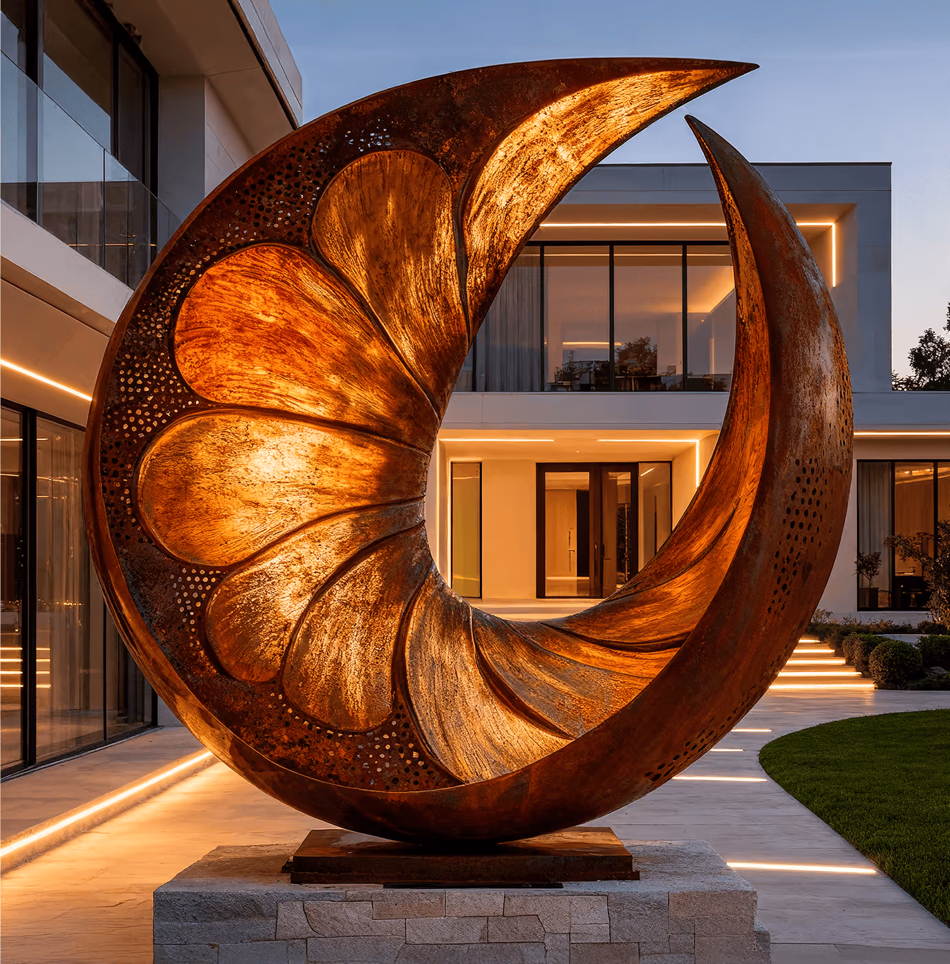 - Spazi pubblici: Oggetti su larga scala in corten e acciaio inossidabile per parchi, giardini, aree pubbliche e private. Le nostre opere resistono alle condizioni esterne.