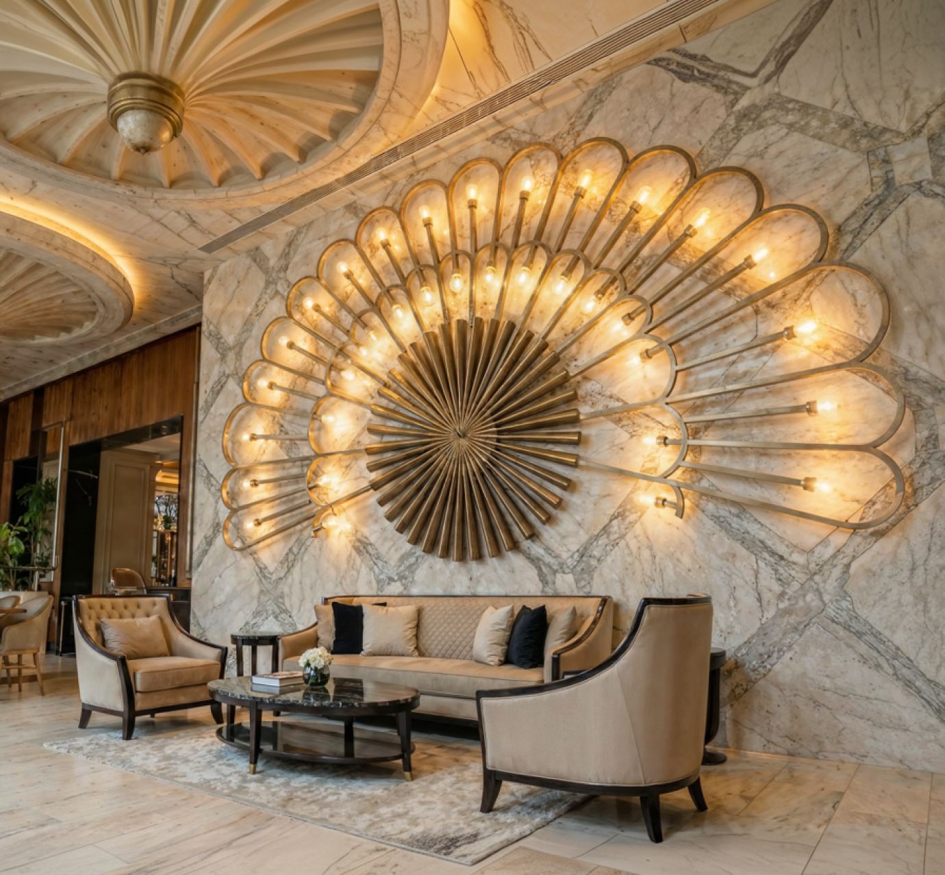 La scultura da parete "Solar Bloom" è un elegante simbolo di energia e armonia. I suoi raggi irradianti, realizzati con elementi metallici, si integrano perfettamente in un interno lussuoso, aggiungendo dinamismo ed equilibrio allo spazio. Con la sua texture raffinata e la geometria sofisticata, questo pezzo centrale diventa il punto focale del design, catturando l'attenzione e creando un'atmosfera calda.
