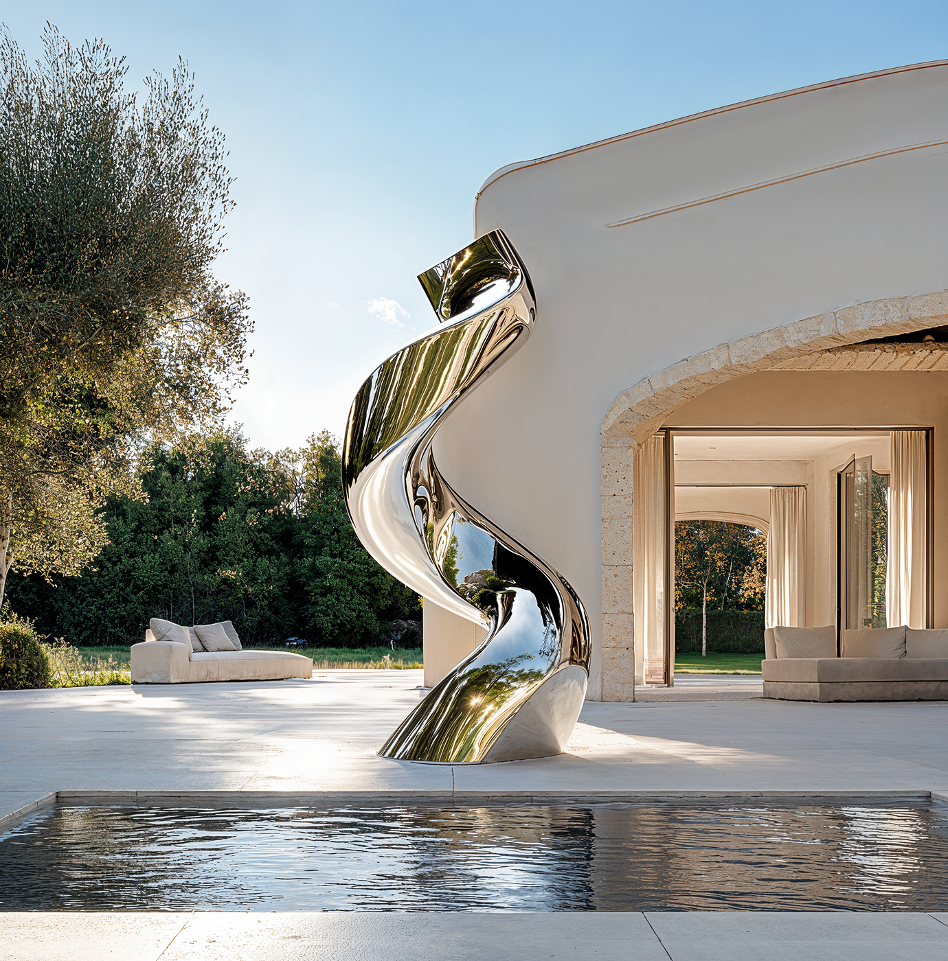 Spiral Of Harmony – its spiraling form symbolizes unity and infinity, bringing a touch of elegance and modernity to any space. This sculpture serves as a perfect centerpiece for private residences, luxury hotels, or outdoor terraces, creating an interactive connection between architecture, nature, and art. Available in various sizes and finishes.
