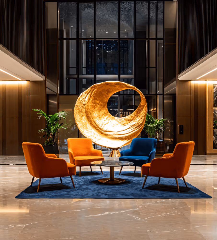 Golden Radiance - una scultura che simboleggia il calore e l'energia della luce. La sua forma richiama un disco solare, che brilla al centro della stanza, aggiungendo sofisticazione e armonia. Realizzata in metallo dorato, l'opera riflette magnificamente la luce ambientale, creando un'interazione magica tra ombre e brillantezza. Perfetta per spazi moderni dove l'arte diventa il punto focale della composizione.