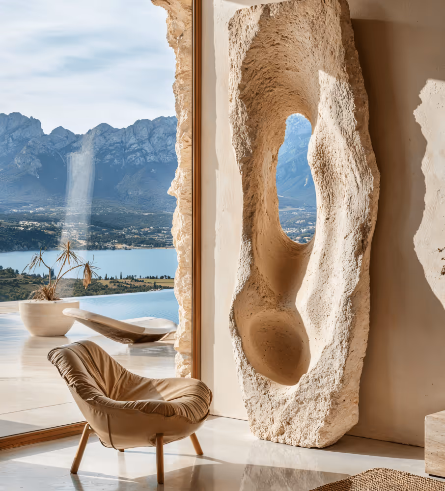 Sanctuary è una scultura che incarna la tranquillità e la connessione con la natura. La sua forma, che richiama formazioni naturali, simboleggia l'armonia tra il vuoto e la sostanza, evocando un senso di rifugio o uno spazio per la contemplazione. La superficie texturizzata conserva l'autenticità della pietra naturale, mettendo in risalto la sua forza ed eleganza.